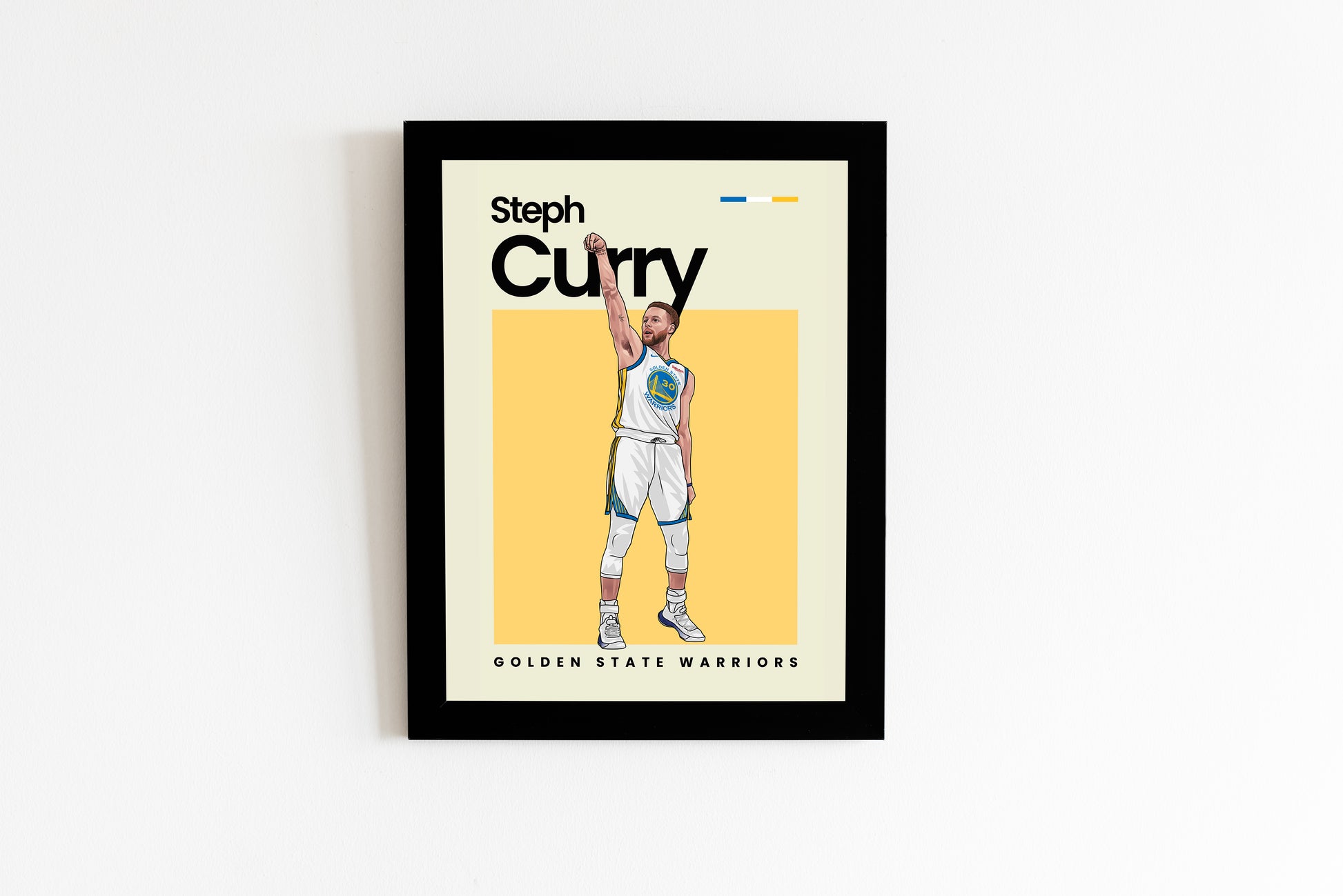 Introducing our exclusive Golden State Warriors Wall Art featuring Steph Curry. This remarkable piece is more than just a poster; it's a perfect tribute for devoted Golden State Warriors enthusiasts or fans of the exceptional Steph Curry. With its minimalist design and sleek black frame, this wall art effortlessly complements any space, adding a touch of elegance to your surroundings.